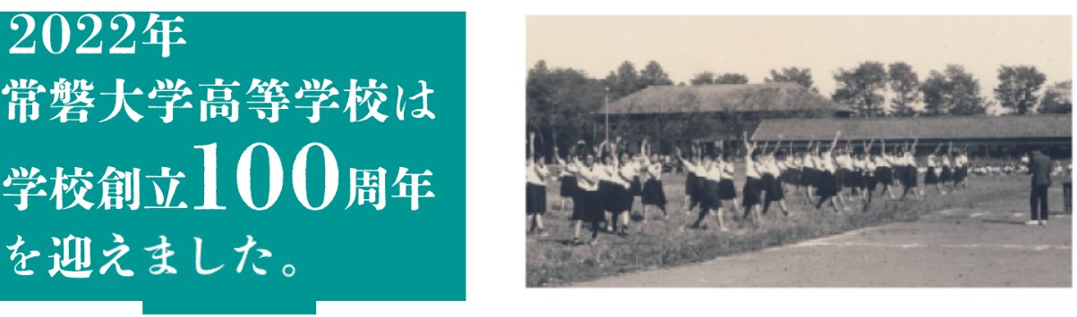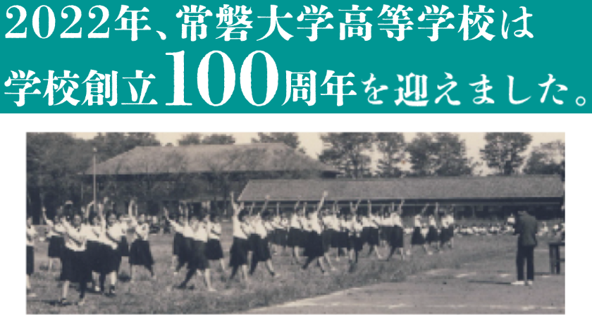 100周年の大きな節目にあたり、わたしたちは、これまでの常磐の歴史を振り返り、これからの常磐を考えます。「人を育てる」ことに重点をおいた本校は、次世代を担う、様々な分野で活躍できる人材をこれからも育成してまいります。