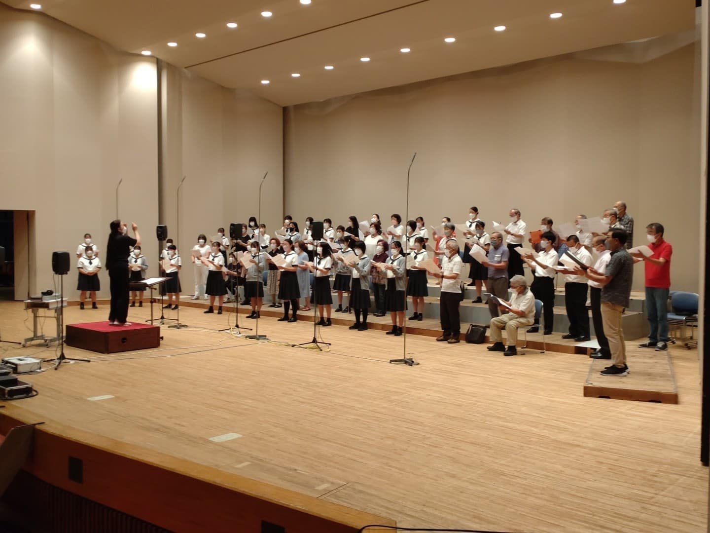 このたび、学校創立100周年を記念して、オーケストラ伴奏による混声三部合唱の演奏で校歌の収録を計画し、2022年9月19日、ひたちなか市文化会館大ホールにて、地元音楽愛好家、音楽団体の協力のもと、レコーディングを行いました。