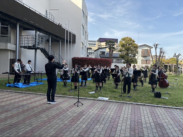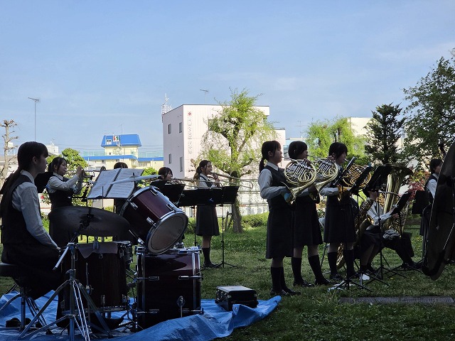 中庭に音楽が響き渡ると、多くの新入生が足を止めて聴いてくれたり、校舎の窓から生徒や先生方が顔をのぞかせる場面も。たくさんの方に楽しんでいただくことができ、部員一同とても嬉しく感じました。