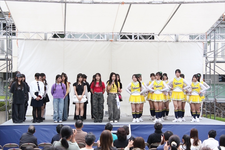 今年度も常磐大学の学園祭のステージに出演させていただきました。当日は、保護者の皆様や、卒業した先輩・引退した3年生にも見てもらうことができました。1・2年生の新体制になってから、10月はいろいろな場所でたくさんのイベントに出演させていただき、部員一同さらに成長することができました。今後も感謝の気持ちを忘れずに活動していきたいと思います。