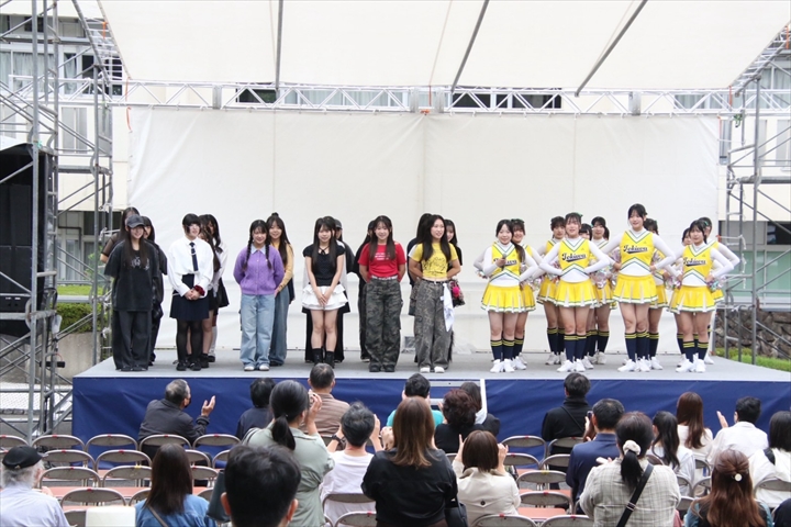 今年度も常磐大学の学園祭のステージに出演させていただきました。当日は、保護者の皆様や、卒業した先輩・引退した3年生にも見てもらうことができました。1・2年生の新体制になってから、10月はいろいろな場所でたくさんのイベントに出演させていただき、部員一同さらに成長することができました。今後も感謝の気持ちを忘れずに活動していきたいと思います。