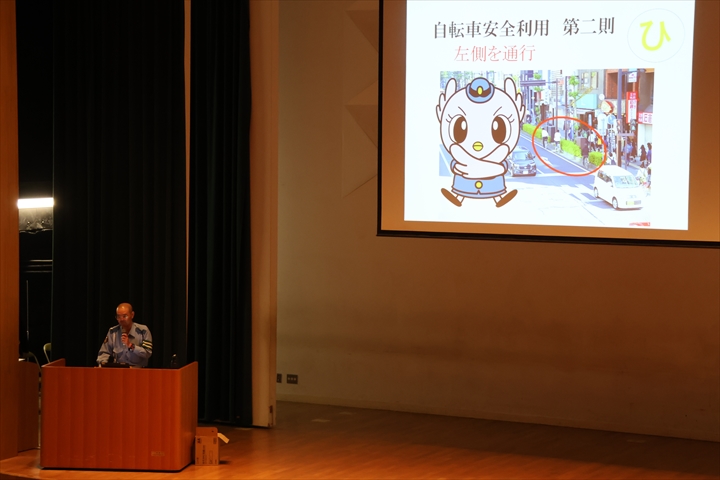 交通安全講話が開催されました 5月14日(水)に警察の方に来校していただき、交通安全に関する講話をしていただきました。昨年11月より道路交通法が改正され、自転車運転時の罰則が強化されました。便利で快適な自転車も「車のなかま」ということも再度認識を強め、本校でも安全管理に努めていきます。
