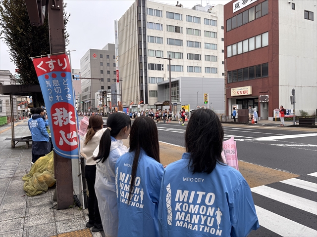 水戸黄門漫遊マラソン 水戸黄門漫遊マラソンに、高校生ボランティアとして参加しました。 第10回の記念大会となる今年は45名(有志生徒26名、陸上部19名)の生徒が参加しました。有志生徒は交通整理やロードコーンの設置、撤去作業など、陸上部の生徒は、距離表示や記録作業などを行いました。生徒達にとってスポーツの力や地域のつながりを感じられる貴重な体験となりました。