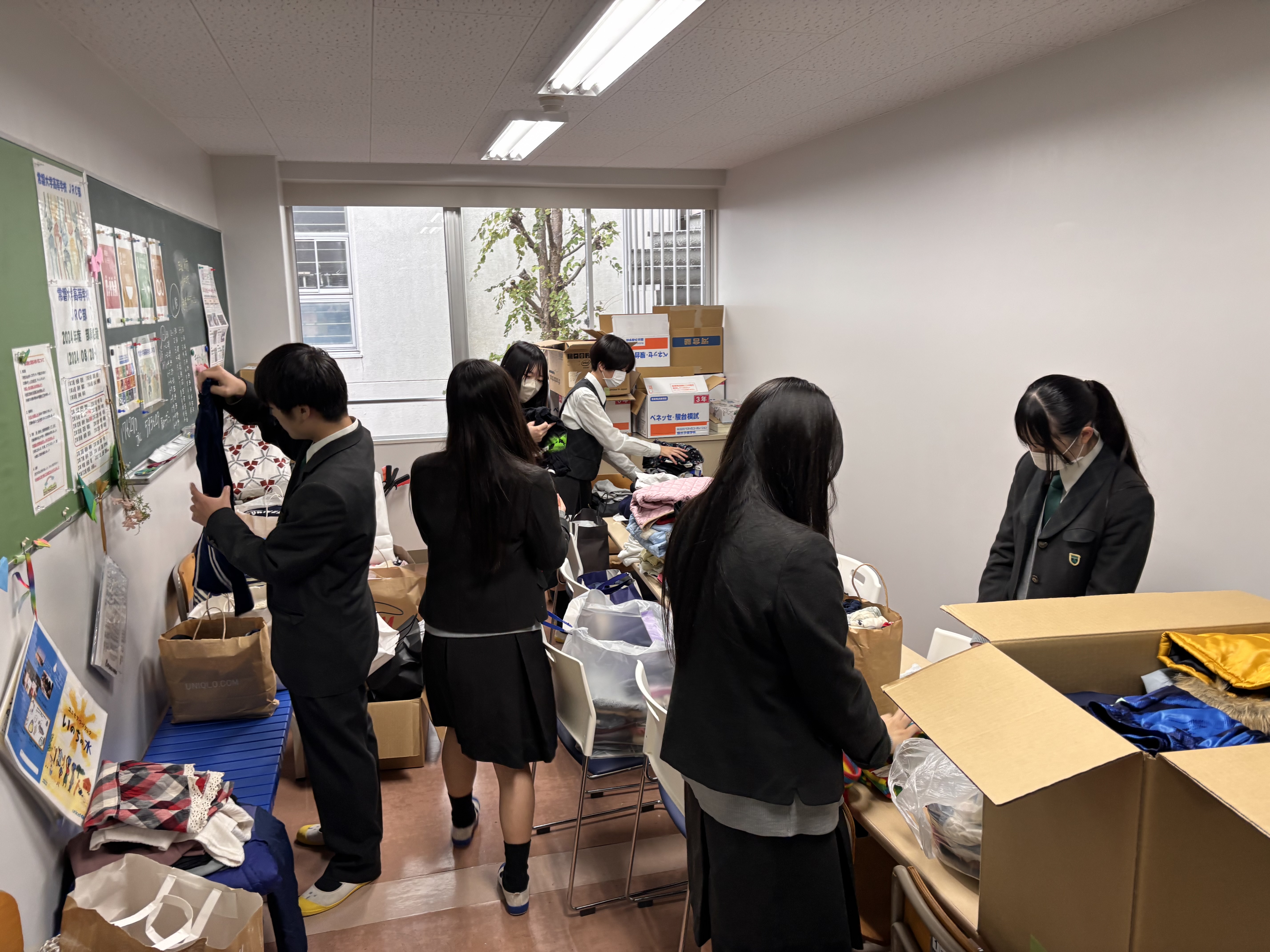 本校では6月にユニクロ社員による難民に関する出張授業を実施しました。その後、生徒たちが主体となって、校内で着なくなった子ども服の回収を呼びかけました。