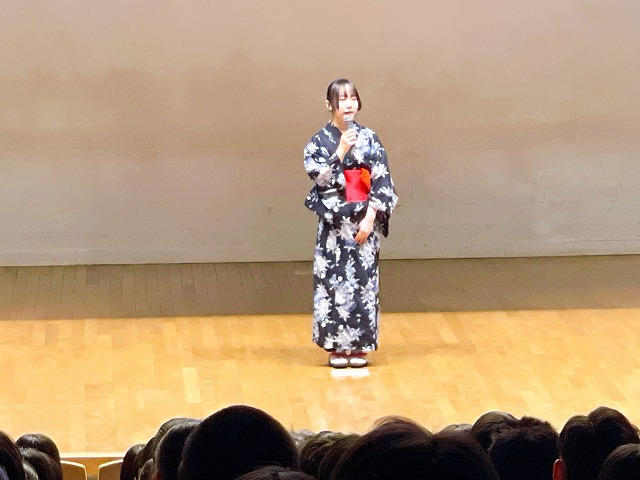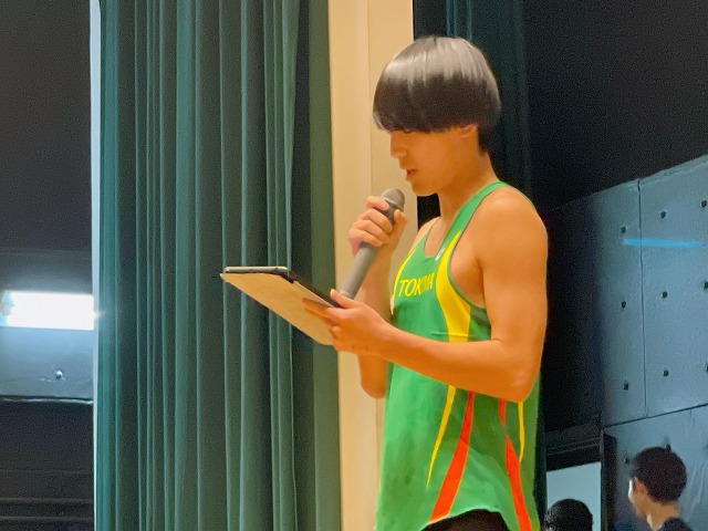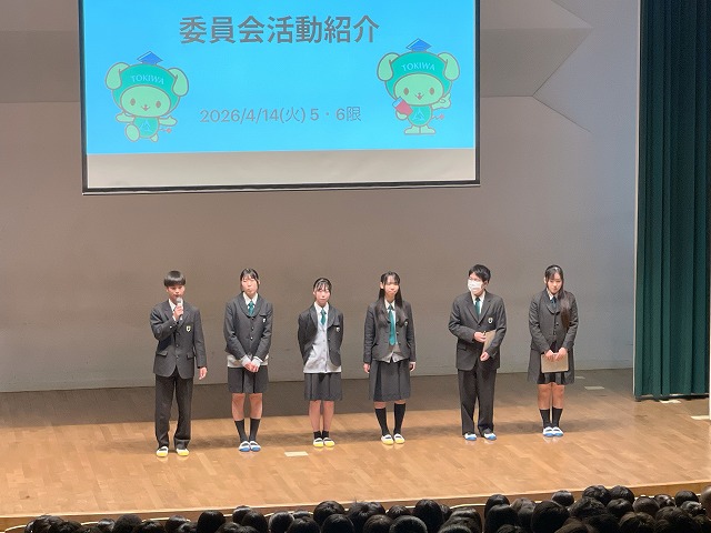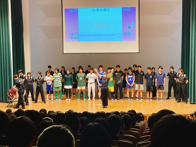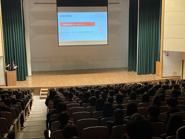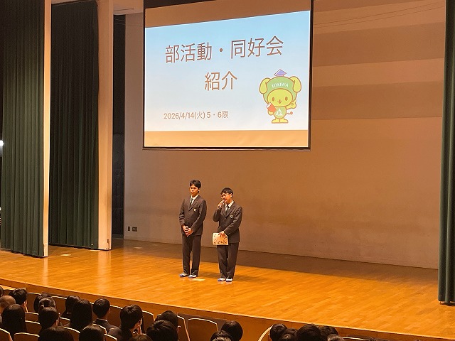 入学したばかりの1年生に向けて部活動・同好会・委員会紹介を行いました。各部が制作した部活動紹介動画を観た後に、部長から挨拶や体験入部についての説明がありました。身を乗り出すように動画を観る1年生の姿が、会場のあちこちで見られました。生徒会役員からは委員会活動についての説明もあり、活躍できる場の多様さも実感できたことでしょう。最後は先輩たちから新入生への熱いエールで終了!
